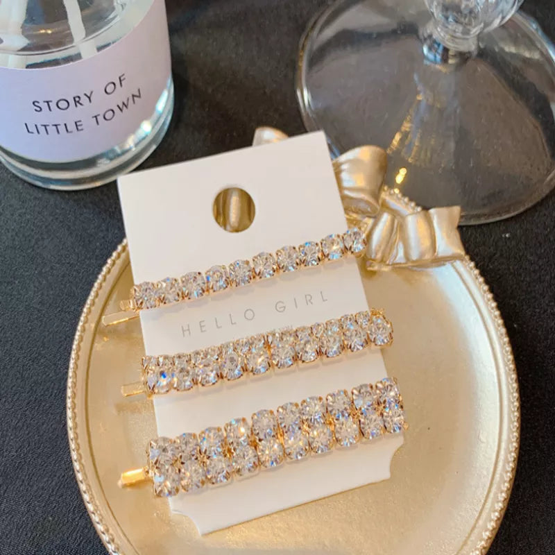 TRIXIE - Rhinestone hair pins 3 PC set. gold/silver Bobby pins